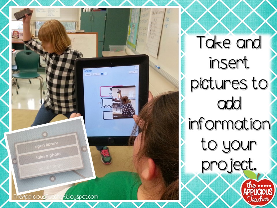 Take a picture, and insert it directly, or add a pre-loaded picture. Above you can see my girls working on a forces of motion flow chart. They’re using their bodies to demonstrate potential energy.
