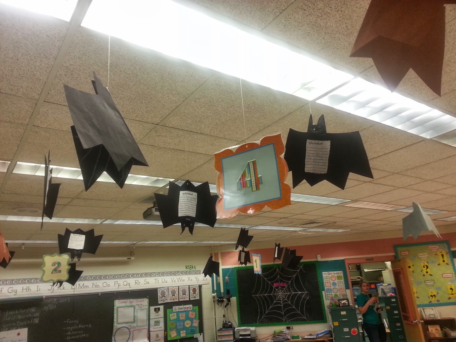 Then, the bats headed up to our ceiling to rest (until night fall…) and helped turn our classroom into a bat cave!